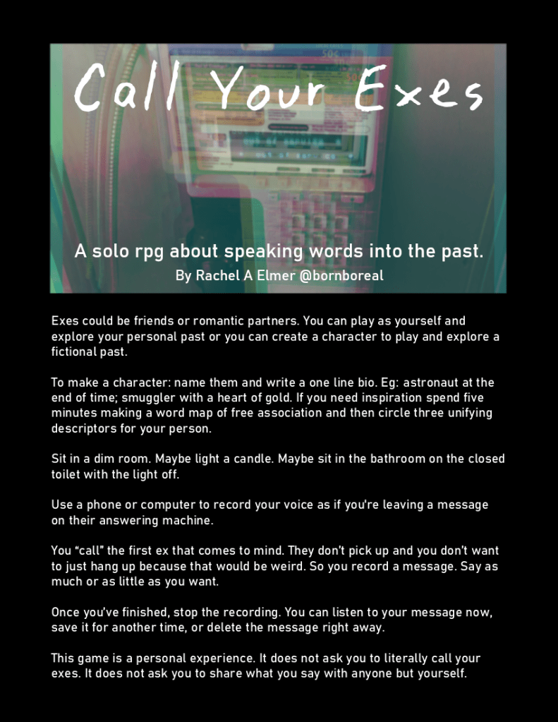These games serve as guides to the activity of interactive and collaborative storytelling. Below are the micro games I’ve written. Soon I’ll post preview pages from the larger-scale campaign game I’m working on with my partner – Skies of the Elemental Age.